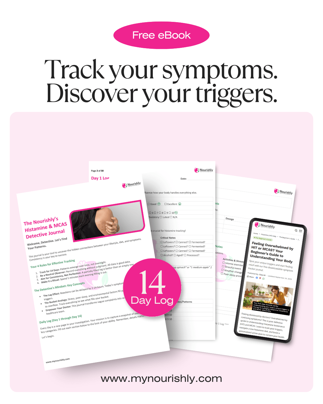Living with histamine intolerance, MCAS, or gut health challenges can feel overwhelming. That's why Nourishly has created a comprehensive library of free tools to give you clarity, confidence, and control on your healing journey.